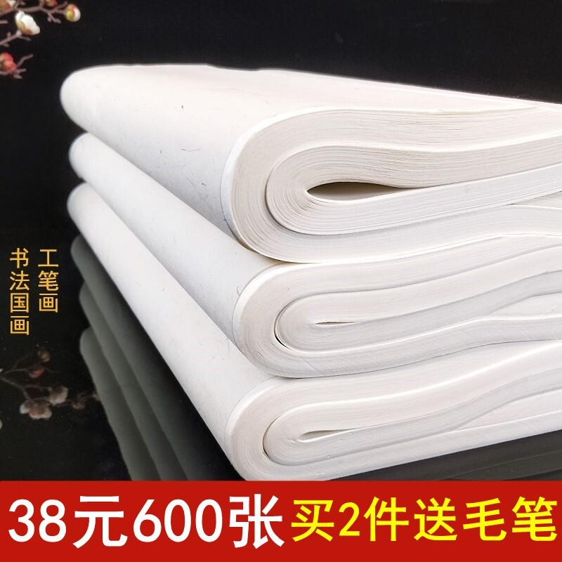 安徽泾县加厚三尺四尺宣纸生宣毛笔字小楷书法创作专用纸国画生宣纸作品纸六尺对开半生半熟宣纸批发 100张