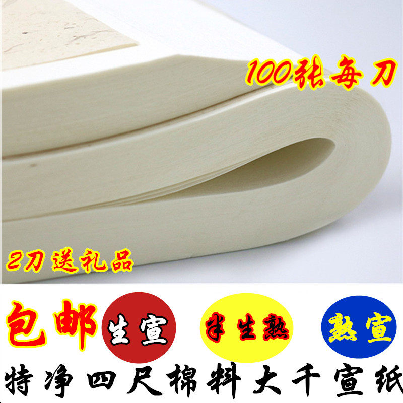四尺六尺对开生宣纸批发初学者加厚生宣画画安徽泾县练字清仓小楷毛笔工笔画熟宣国画书法专用半生半熟100张