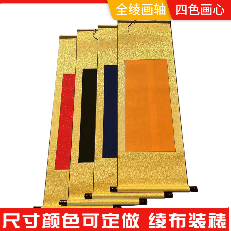 黄色宣纸洒金万年蓝手工装裱大红半生熟空白卷轴全绫生宣书法批发