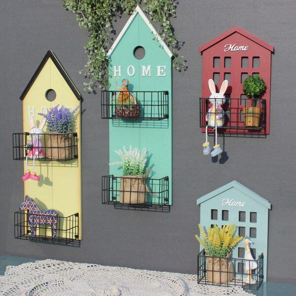 儿童房卧室墙饰间门口收纳置物架品墙上北欧风小房子壁挂装饰彩色