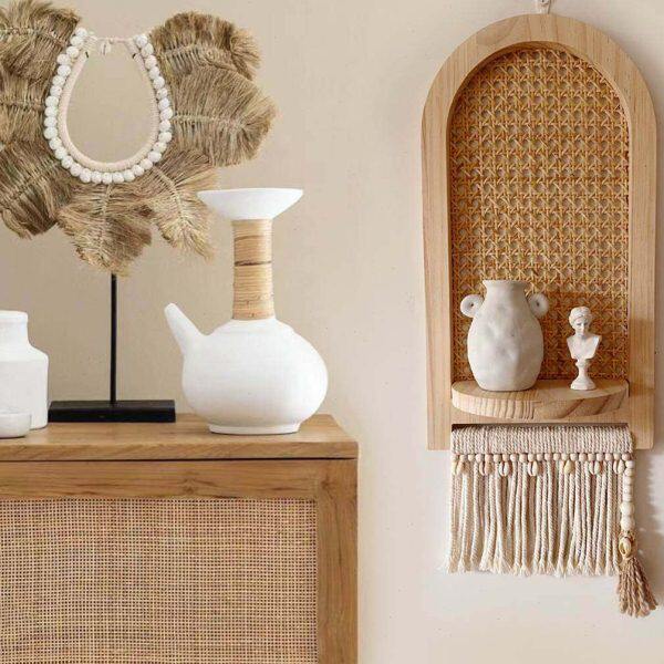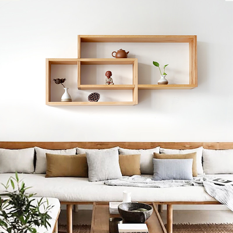 日式侘寂墙饰置物架摩洛哥原木风店铺沙发背景墙面装饰民宿装饰品