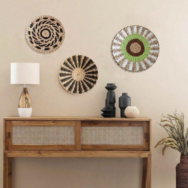 中古侘寂风墙饰置物架日式天然印尼藤编壁挂实木花架背景装饰民宿