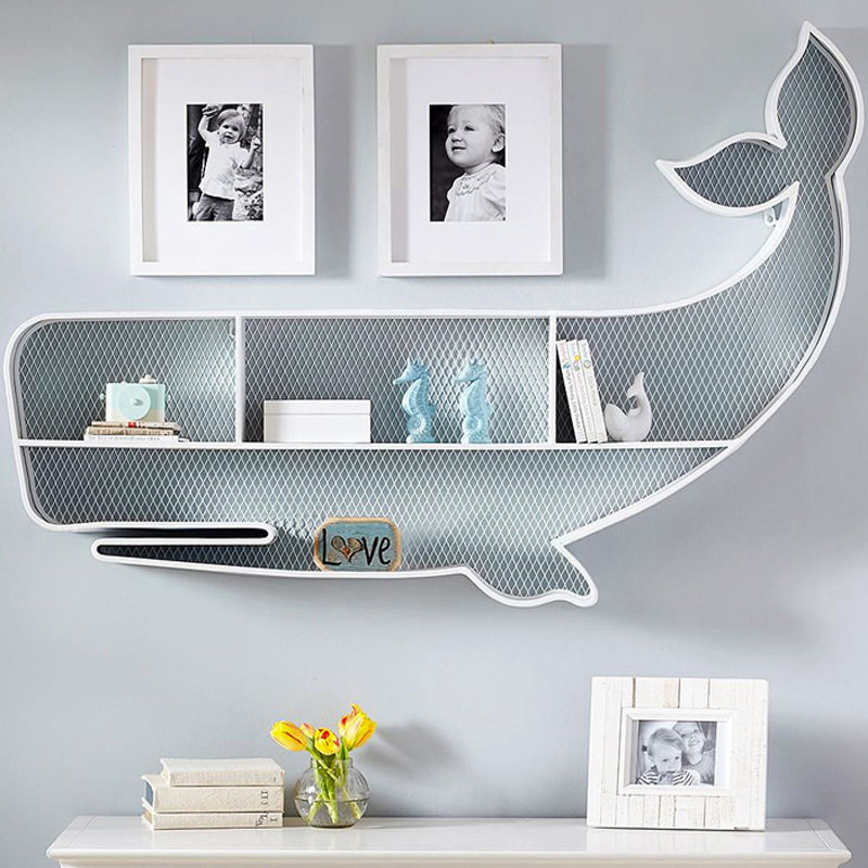 儿童书房鲸鱼墙饰墙上置物架客厅装饰品壁饰幼儿学校挂件书架收纳