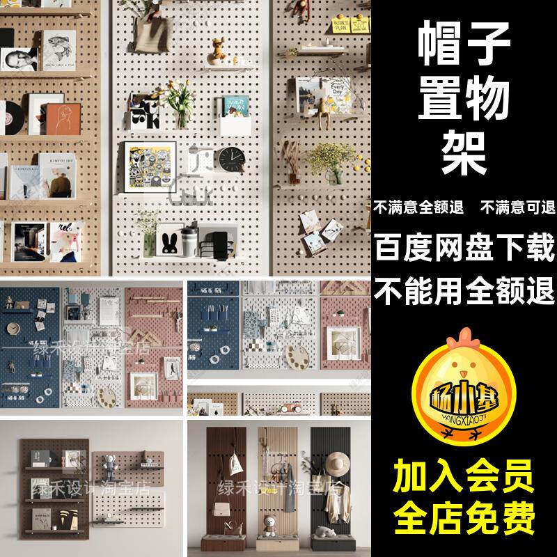 洞洞板墙饰板挂件挂衣钩衣服包包帽服饰收纳置物架草图大师SU模型