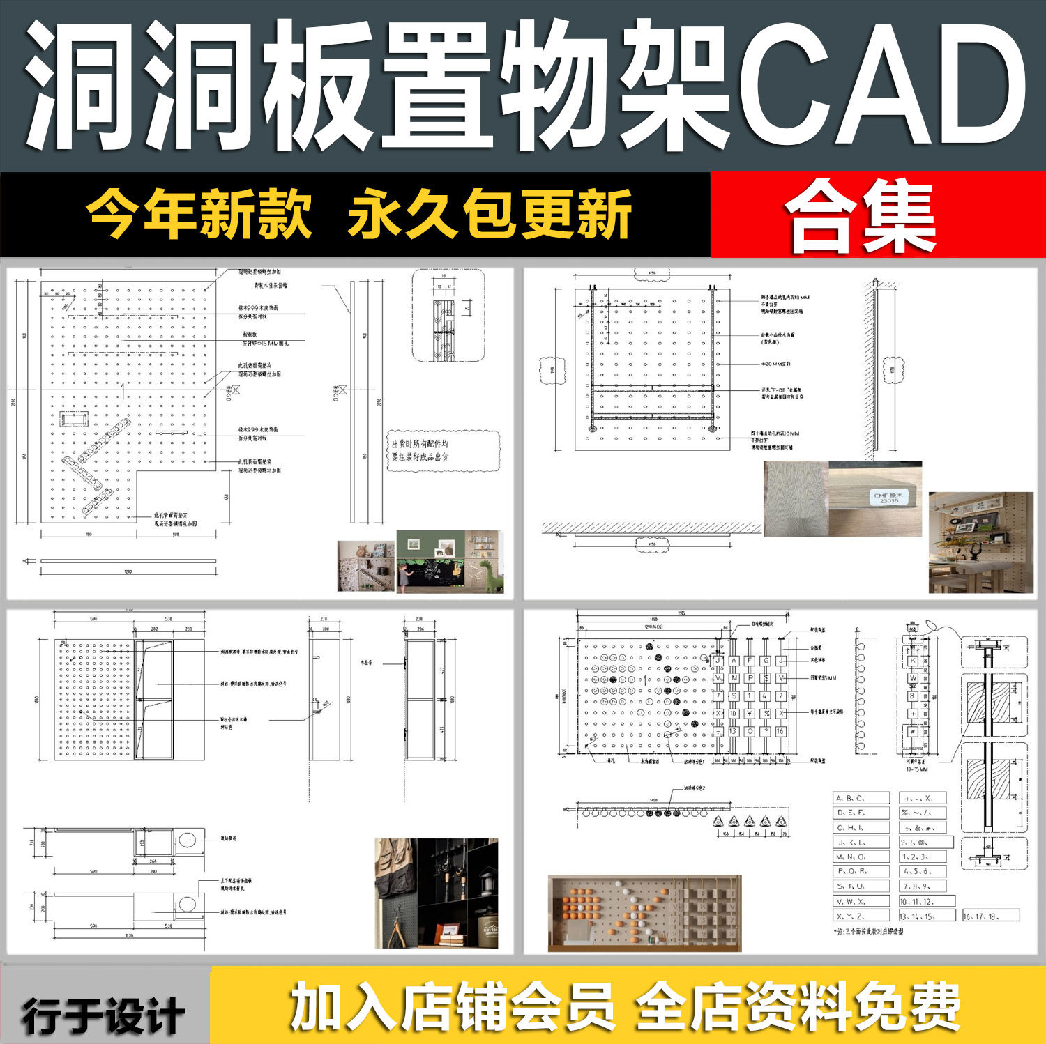 洞洞板置物架墙面墙饰板收纳挂件立面图节点大样图详图CAD施工图