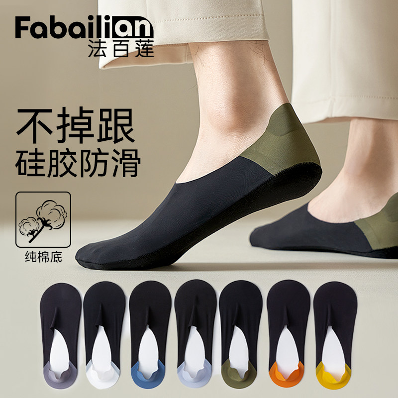 冰丝船袜男防滑不掉跟夏季薄款袜子男浅口隐形无痕纯棉底短袜防臭