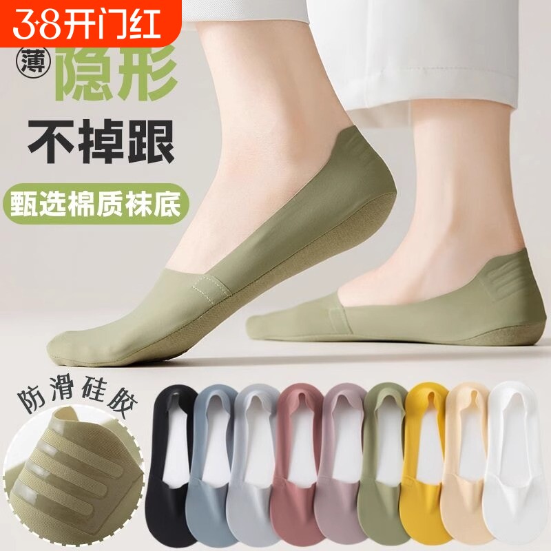 袜子男冰丝船袜纯棉夏季薄款防臭吸汗硅胶防滑无痕隐形浅口不掉跟