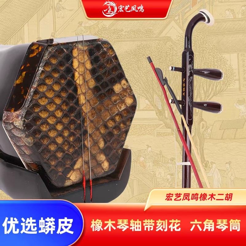 宏艺凤鸣二胡乐器初学者成人通用橡木二胡黑檀二胡紫檀二胡赠配件