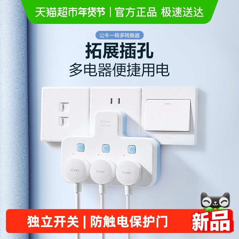 公牛插座扩展多功能插座转换器电源插头转换器转换插头插排多插位