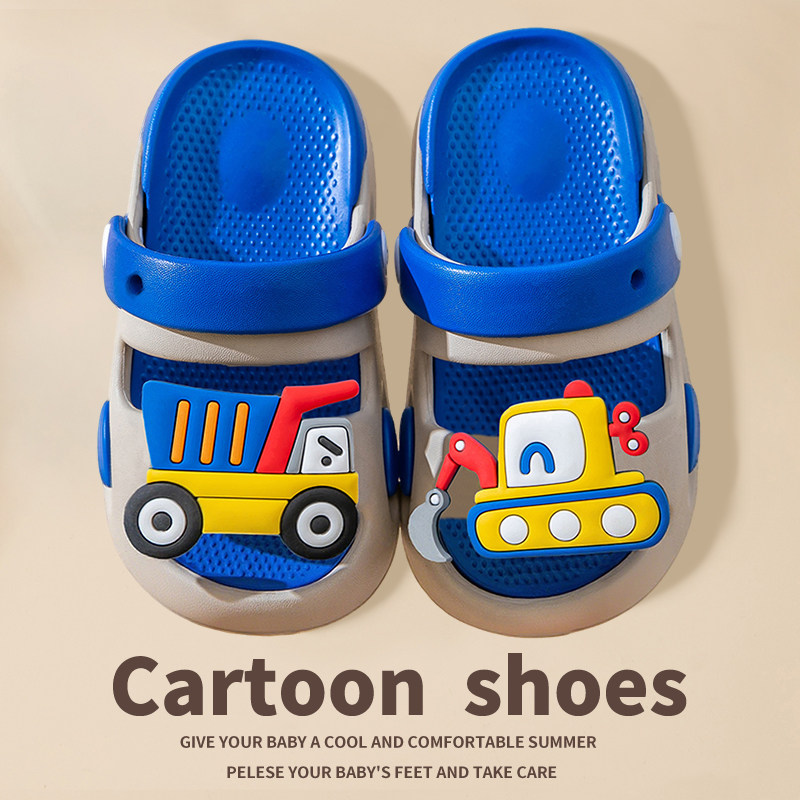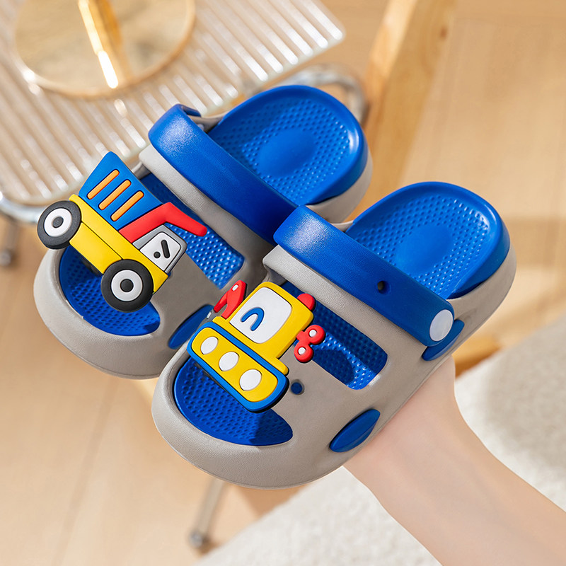 卡通挖土车儿童拖鞋男童凉鞋夏季室内洗澡防滑男孩拖鞋宝宝沙滩鞋