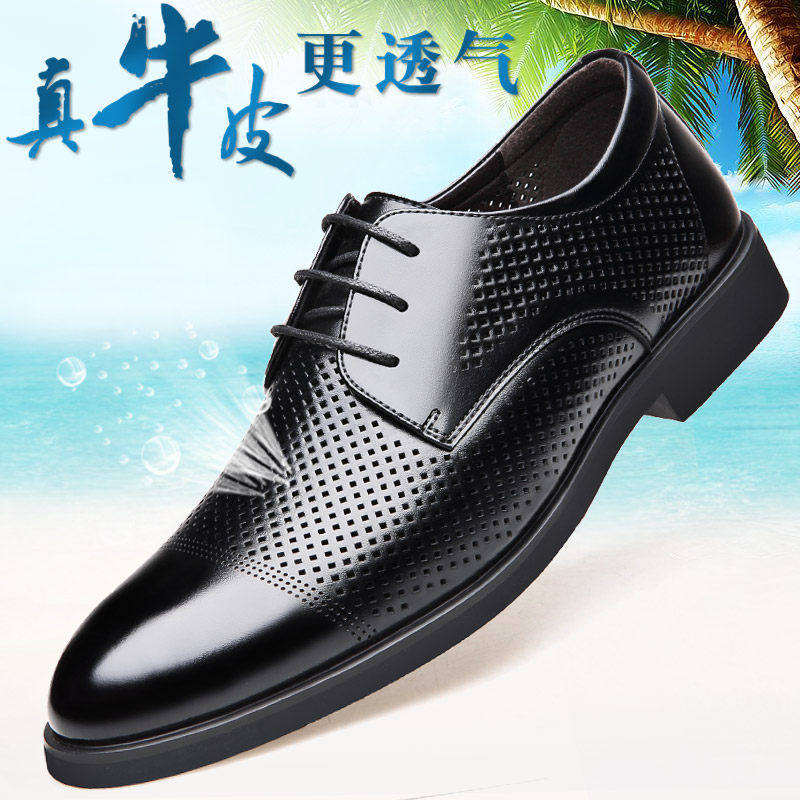 - 镂空皮鞋男 真皮
