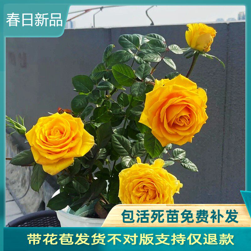 金香玉黄色玫瑰花苗盆栽金镶玉灌木大花金黄月季多季开盆栽绿植物