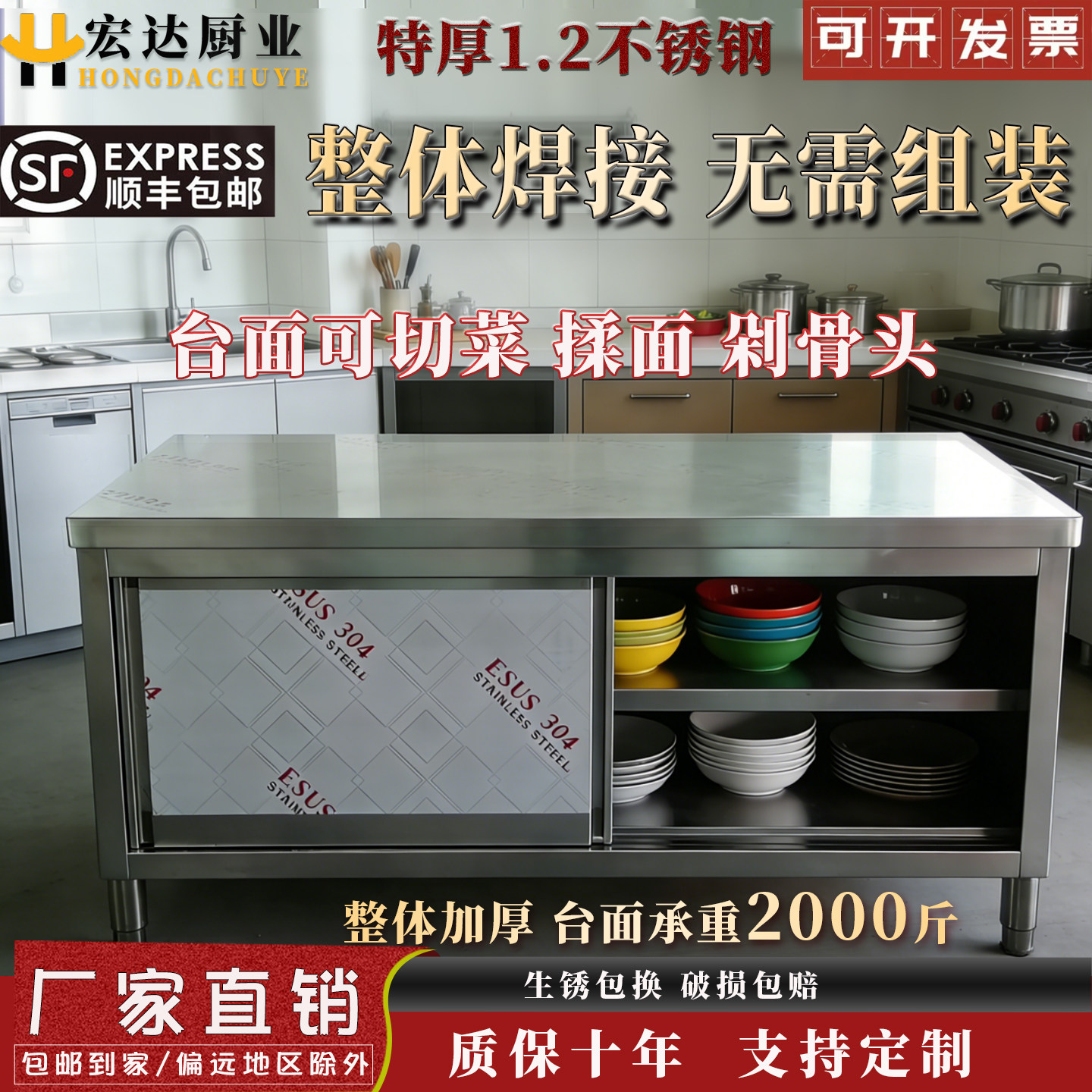 整体焊接304特厚1.2不锈钢拉门工作台厨房橱柜操作台厨房酒店放碗