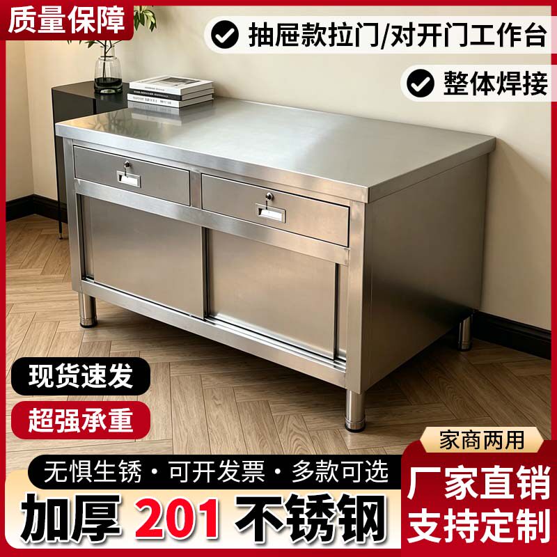 加厚304不锈钢工作台家用厨房专用操作台拉门打荷台桌子台面定做