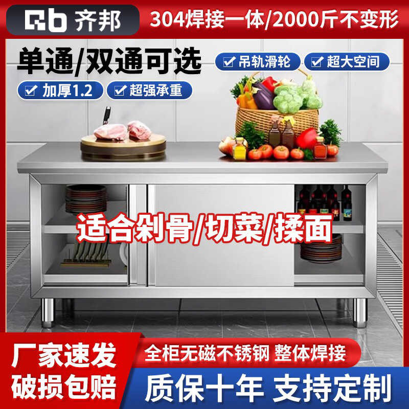 不锈钢工作台厨房操作台面储物柜切菜桌子带拉门案板商用专用烘焙