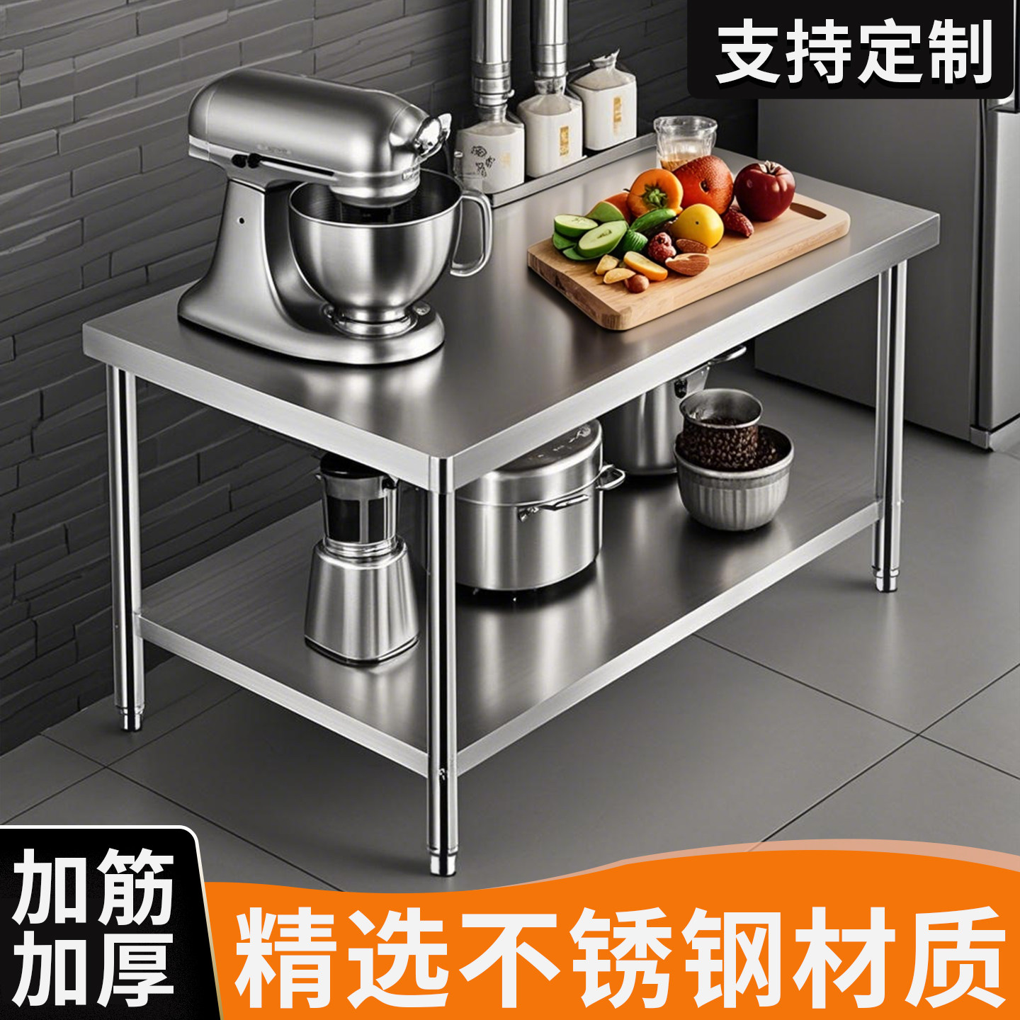 定做特厚304不锈钢两层工作台操作台烘焙打包切菜桌子家庭收纳架2