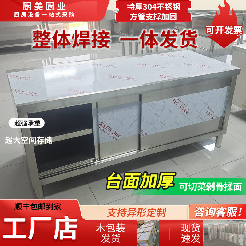 焊接特厚304不锈钢拉门工作台厨房专用家用操作台拉门打荷台橱柜