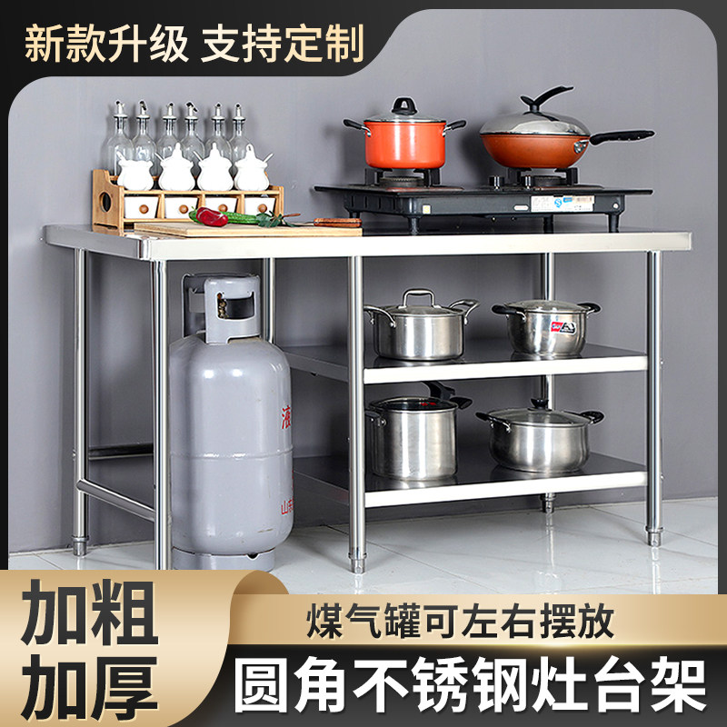 不锈钢橱柜厨房煤气罐三层工作台商用家用操作台多功能一体储物柜