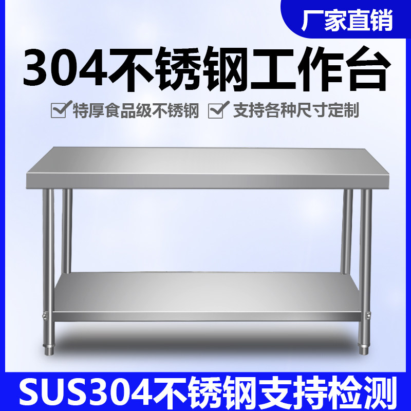 国标304特厚不锈钢工作台双层厨房操作台工厂打包打荷台案板台面