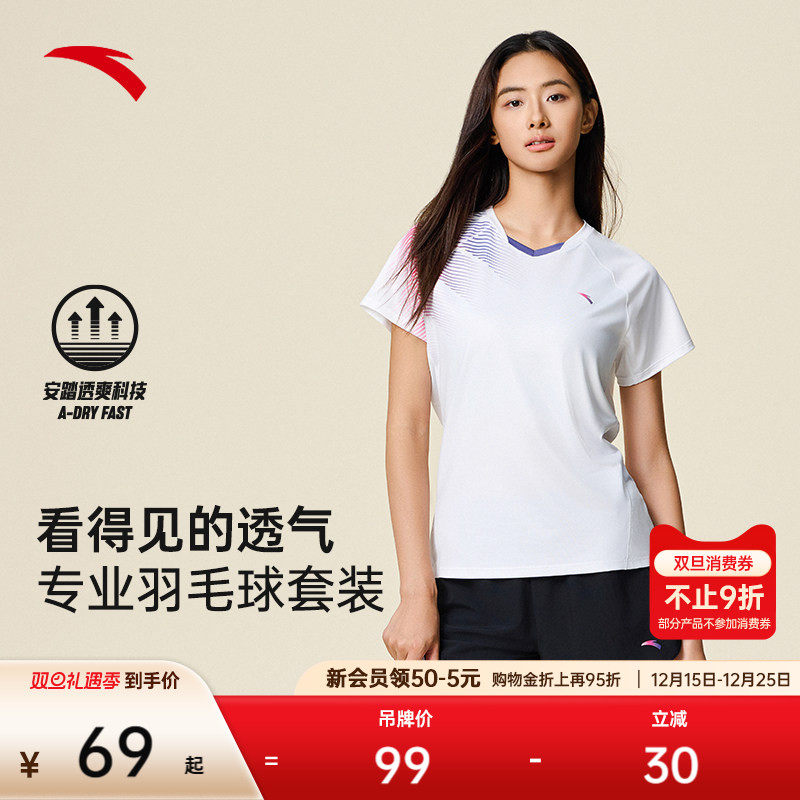 安踏专业羽毛球套装女夏季速干透气运动两件套训练运动服短袖短裤