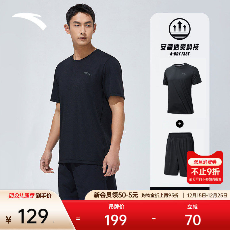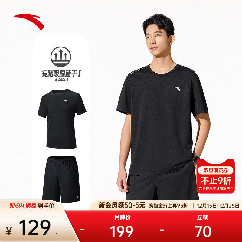 安踏速干套装丨运动短袖t恤短裤两件套男夏季新款透气跑步训练服