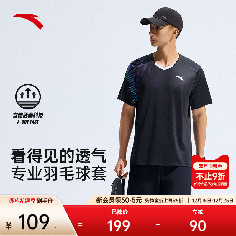 安踏速干羽毛球套装男夏季透气专业运动两件套训练运动服短袖短裤
