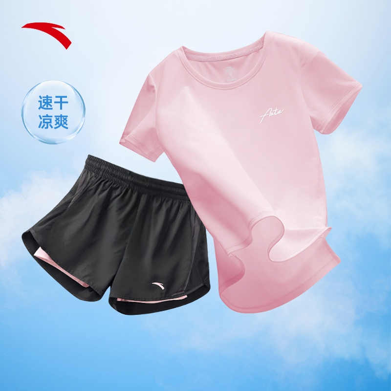 安踏速干套装丨运动套装女士夏季体测健身短袖透气跑步短裤休闲套