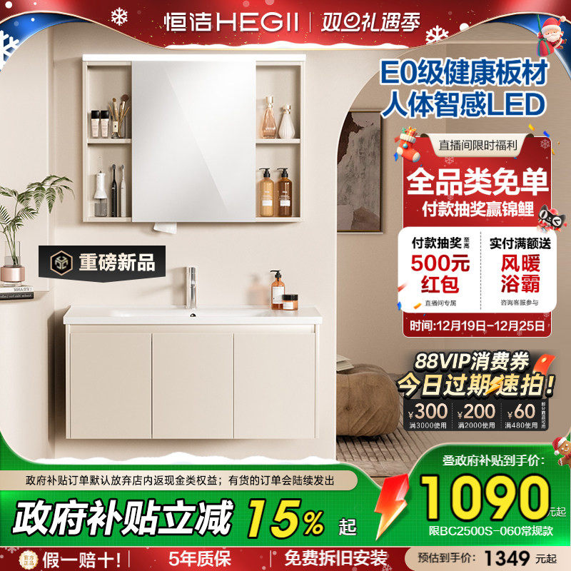 【百亿补贴】恒洁卫浴新款浴室柜组合陶瓷一体盆卫生间洗漱台盆柜