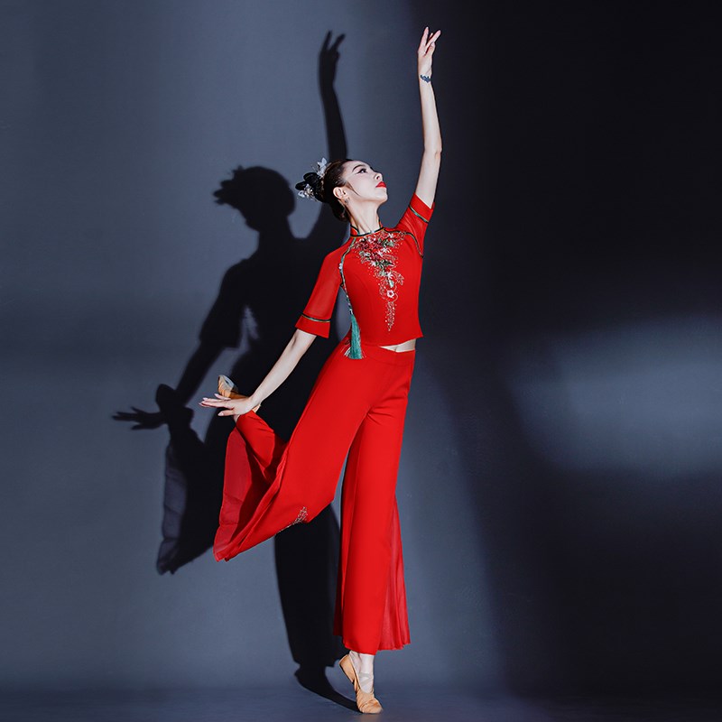 秧歌舞演出服装女2023新款古典舞飘逸扇子舞广场舞套装成人舞蹈服