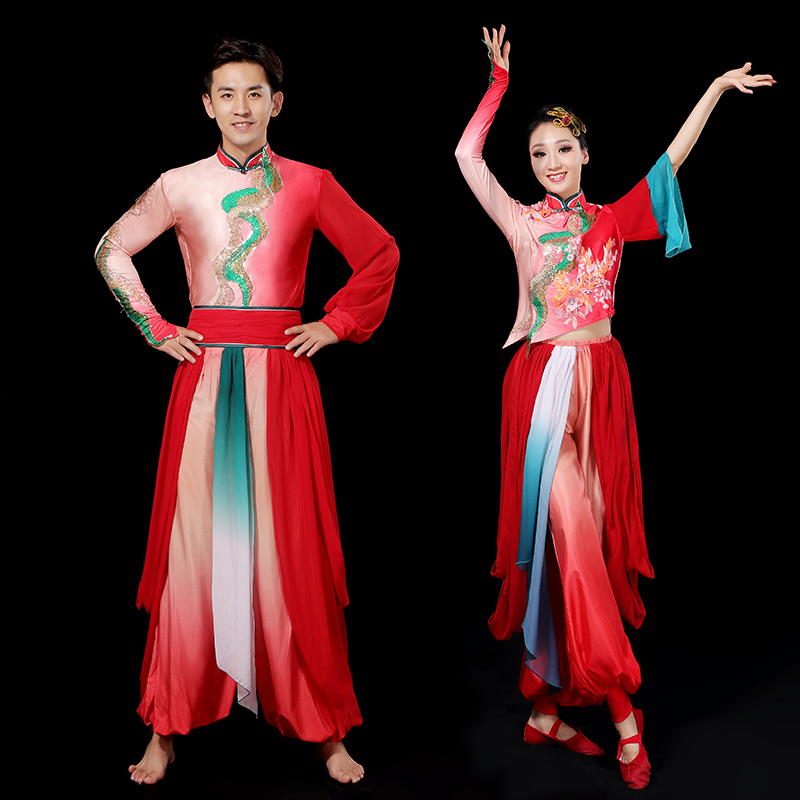 2025新款中国风男女秧歌舞演出服成人飘逸扇子舞广场舞古典舞蹈服