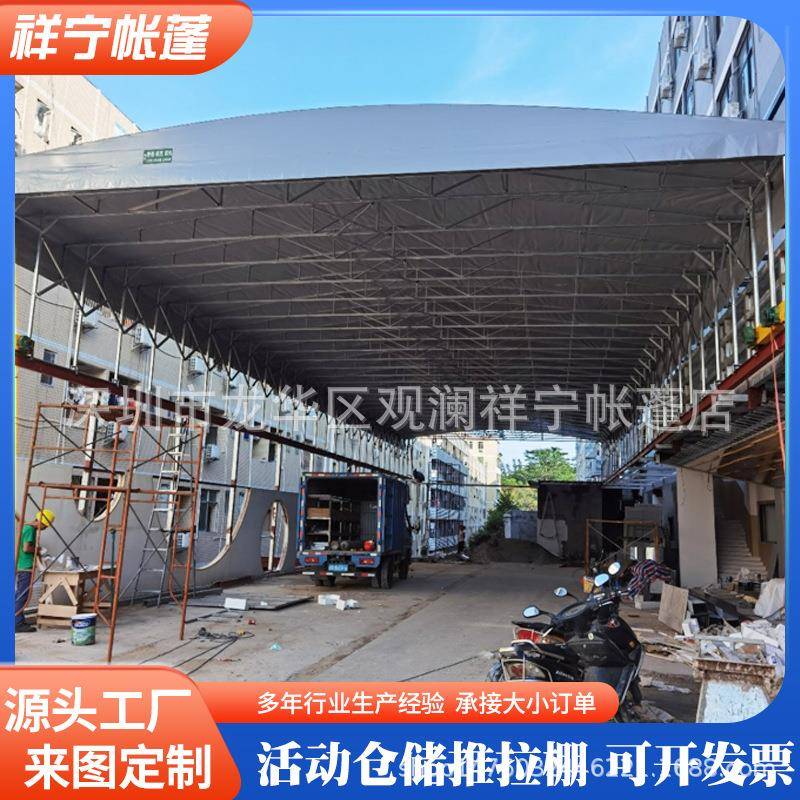 移动推拉式雨棚伸缩活动排档遮阳棚大型仓库物流户外仓库推拉雨蓬