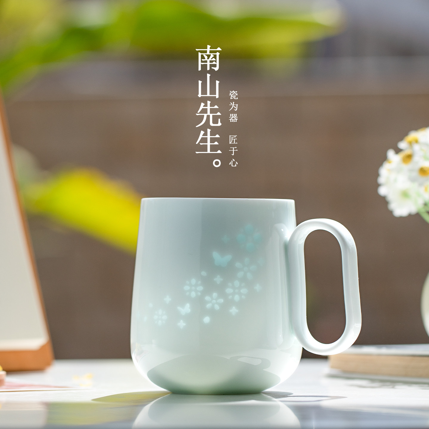 南山先生芳菲水杯玲珑瓷家用马克杯带盖办公杯高颜值渐变色咖啡杯