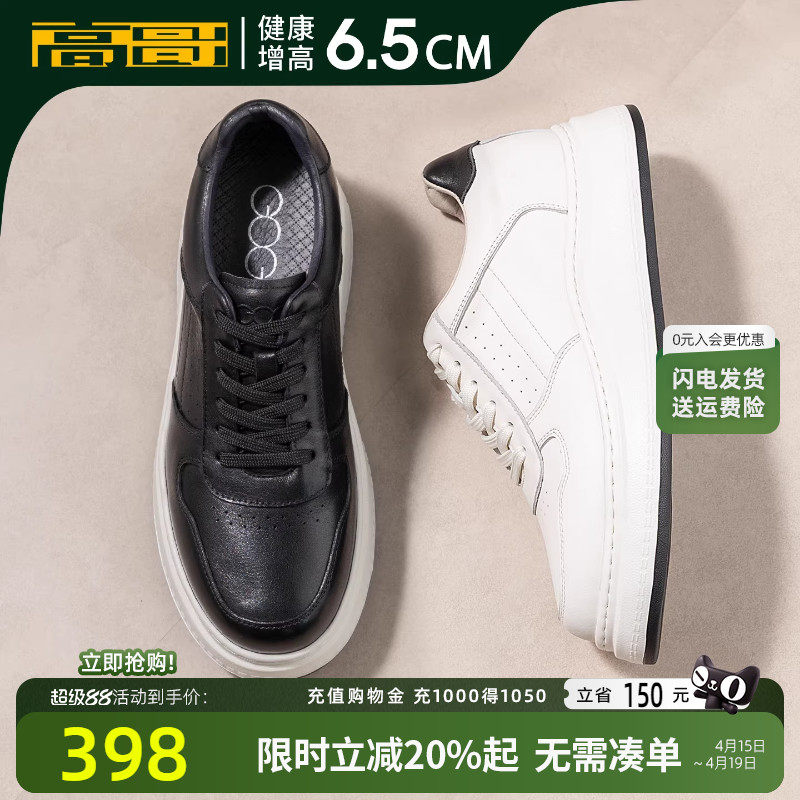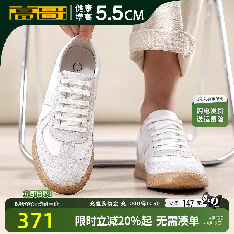 高哥增高小白鞋真皮厚底休闲男鞋子春季轻便运动鞋男士内增高板鞋