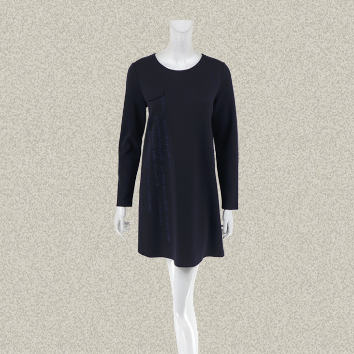 法路INA 正品 字母绣花深蓝色A型女春秋冬棉弹力针织连衣裙 6023