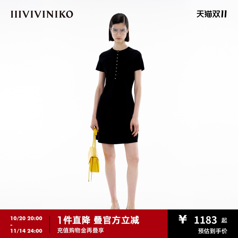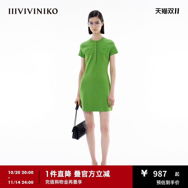 【真丝粘纤系列】IIIVIVINIKO夏季新款圆领A型针织连衣裙女