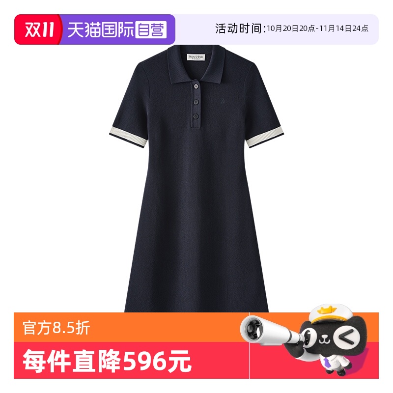 【自营】Marc O'Polo【商场同款】翻领撞色袖口小A型毛针织连衣裙