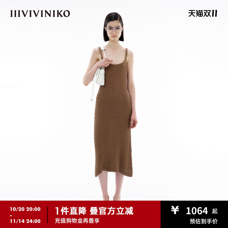 【金属色钩针感】IIIVIVINIKO夏季新款A型吊带针织连衣裙女