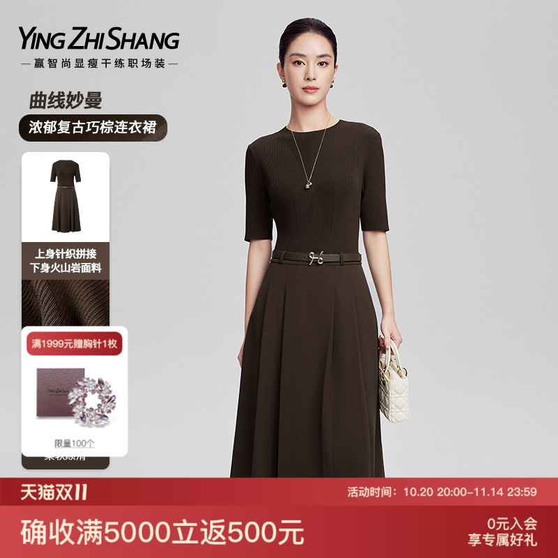 赢智尚连衣裙2025春新款复古收腰显瘦职场内搭拼接针织a型裙子女