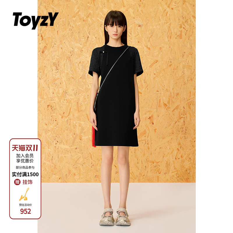 JNBY/江南布衣折扣春夏连衣裙针织拼接简约舒适短袖圆领A型女