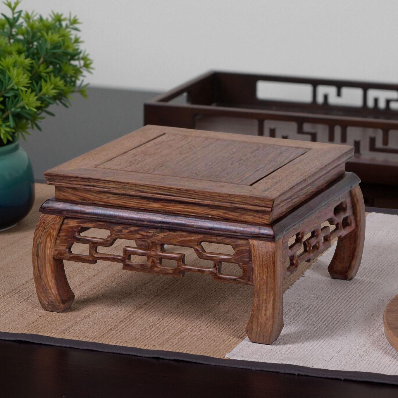 鸡翅木底座实木中式仿古工艺品摆件茶壶茶杯花盆花瓶佛像木托架子