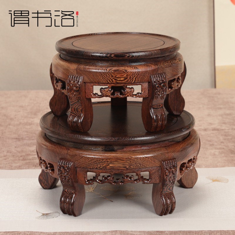 鸡翅木底座 实木雕刻工艺品花瓶底座圆形花盆景佛像摆件鱼缸底座