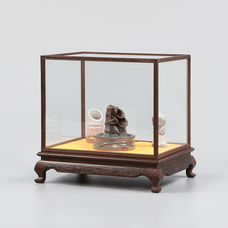 鸡翅木底座玻璃罩实木佛像花瓶佛龛摆件防尘展示盒子红木雕刻定制