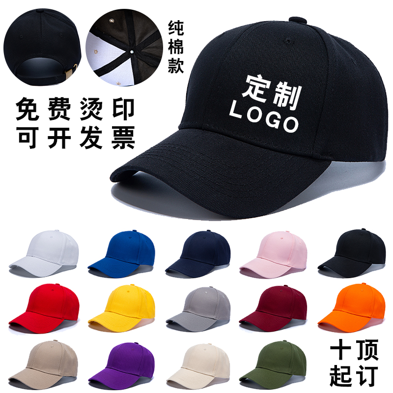 纯棉帽子定制刺绣logo印字订制棒球帽鸭舌帽定做工作帽广告遮阳帽