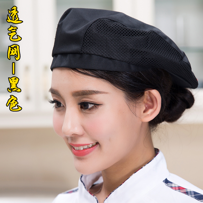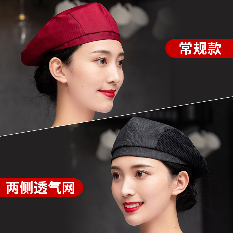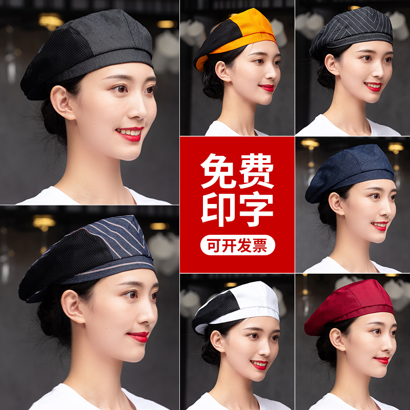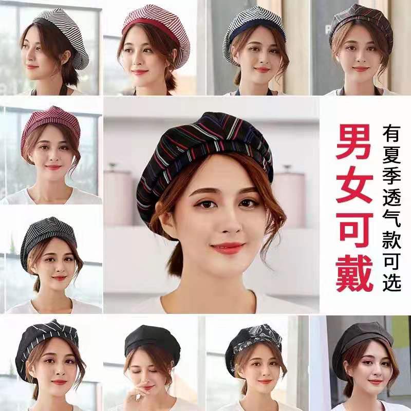 厨师帽子男女夏季透气服务员贝雷帽餐饮奶茶店餐厅厨房工作帽定制