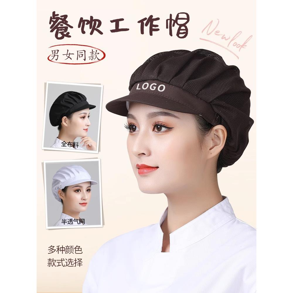 厨师帽子男女透气防油烟防掉头发服务员餐饮奶茶店厨房工作帽定制