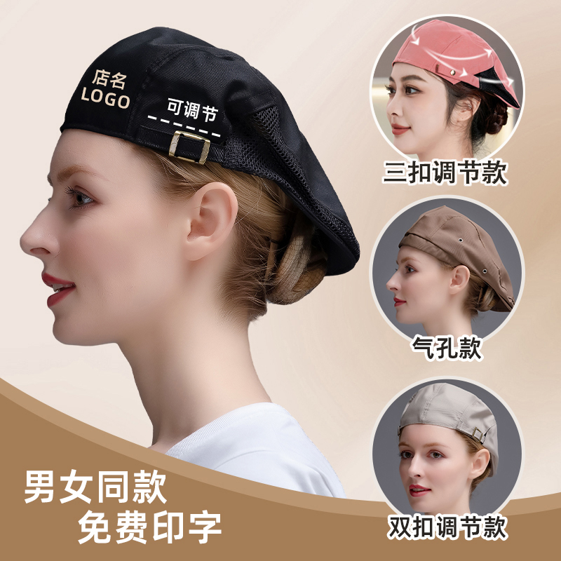 厨师帽子男女透气防油烟服务员贝雷帽餐饮奶茶店厨房工作帽定制新