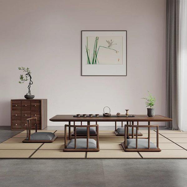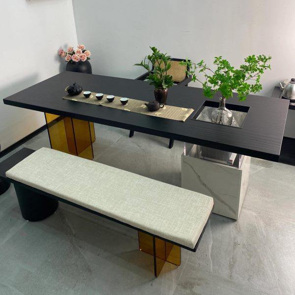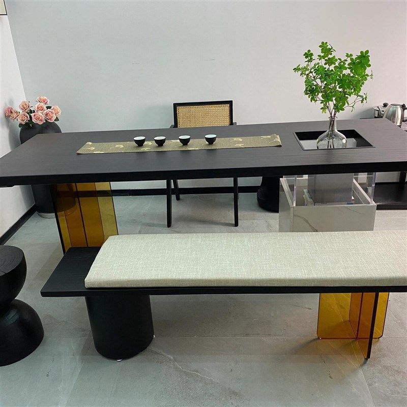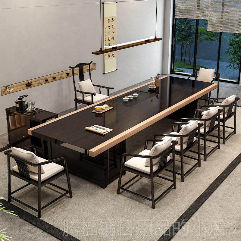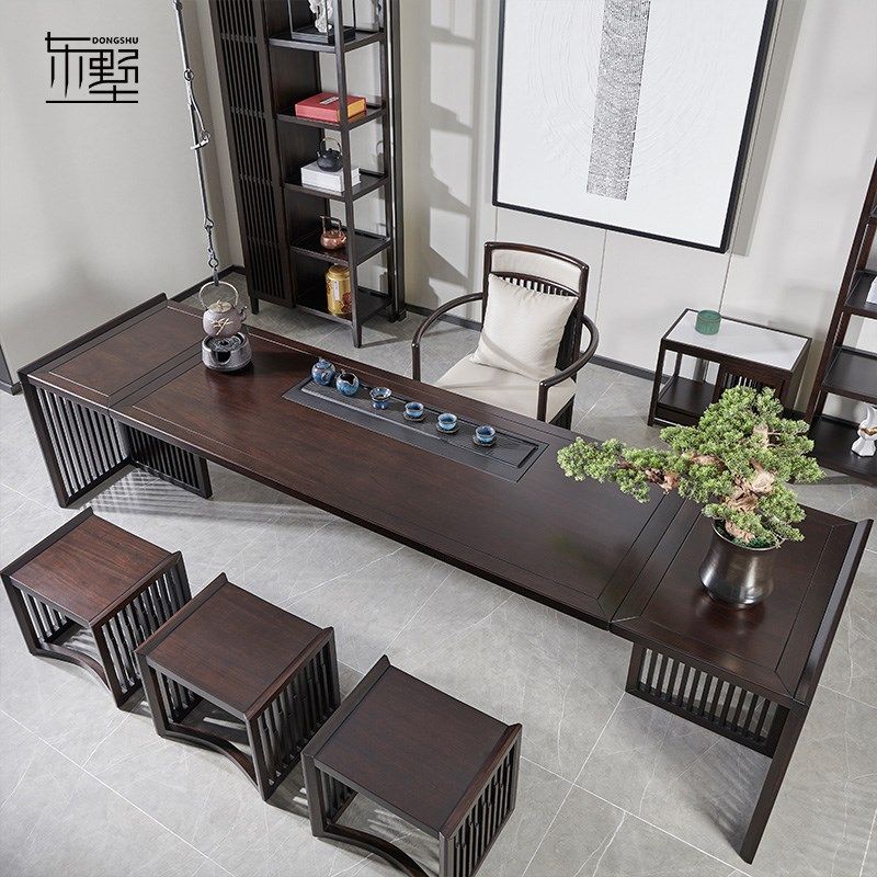 新中式乌金木长方形茶桌茶椅茶凳现代家用茶台茶室会客室家具定制