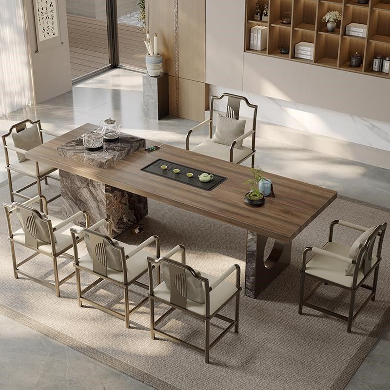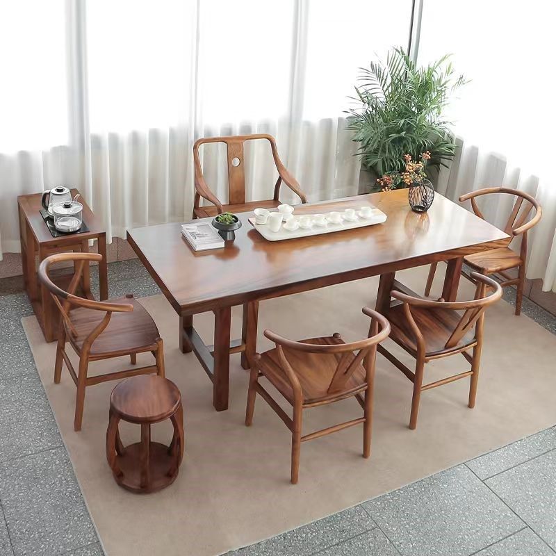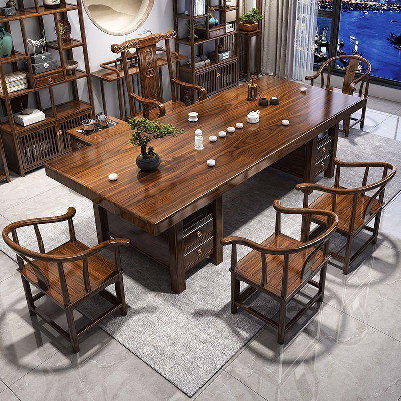 胡桃木实木大板茶桌 茶椅组合现代轻奢商业办公会议桌家用泡茶桌