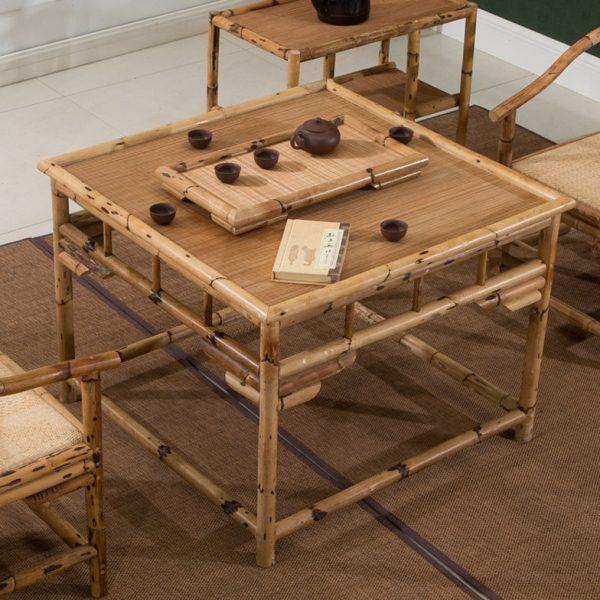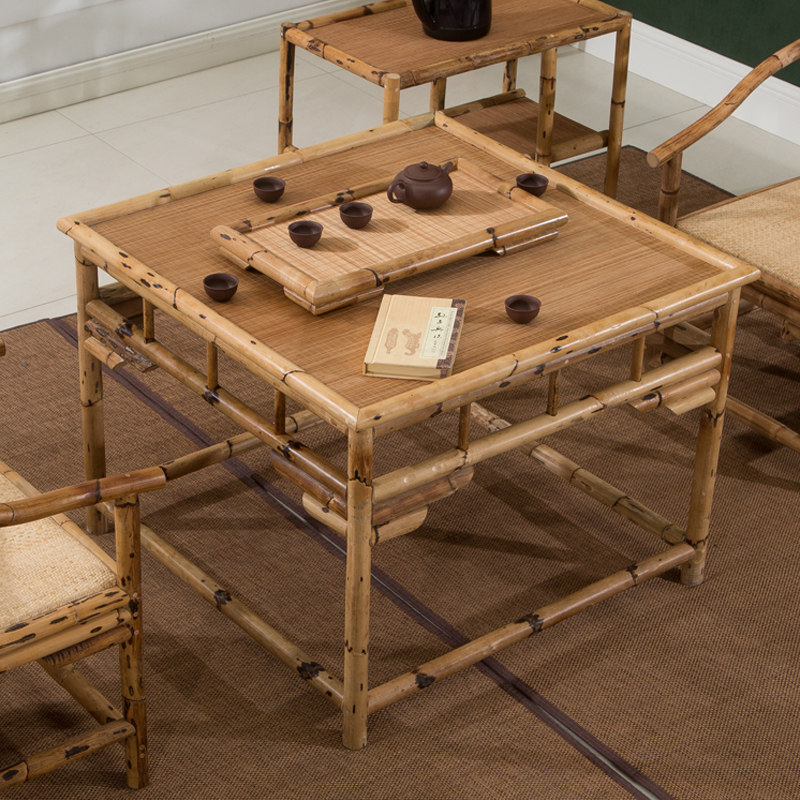 定制竹藤方茶桌茶椅组合民宿酒店正方形功夫茶几泡茶桌茶艺桌茶台