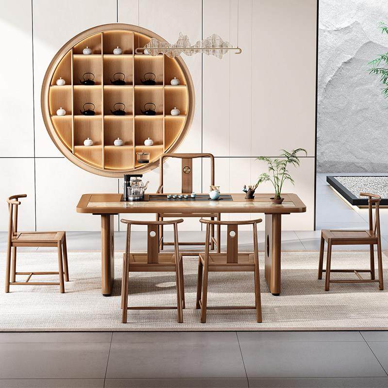 高档原木色茶桌椅组合一桌茶椅办公家用泡几新中式五木茶台套实装